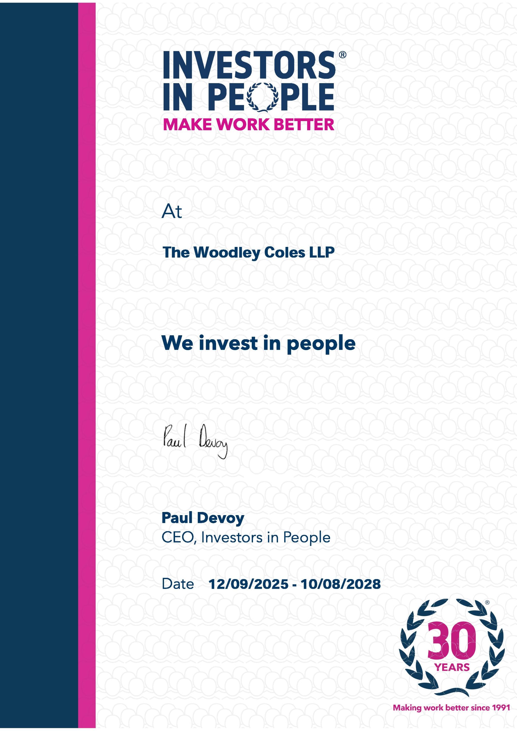 Since 2004 we have held the “Investor in People” accreditation status which, among other things, provides an external quality benchmark for the way we train and develop our staff.