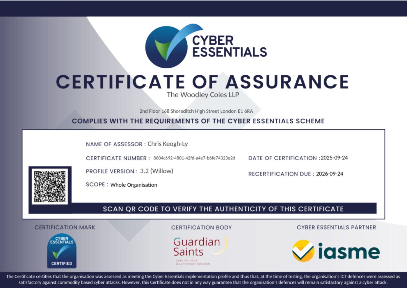 We hold a Cyber Essentials certification, demonstrating our commitment to cybersecurity.