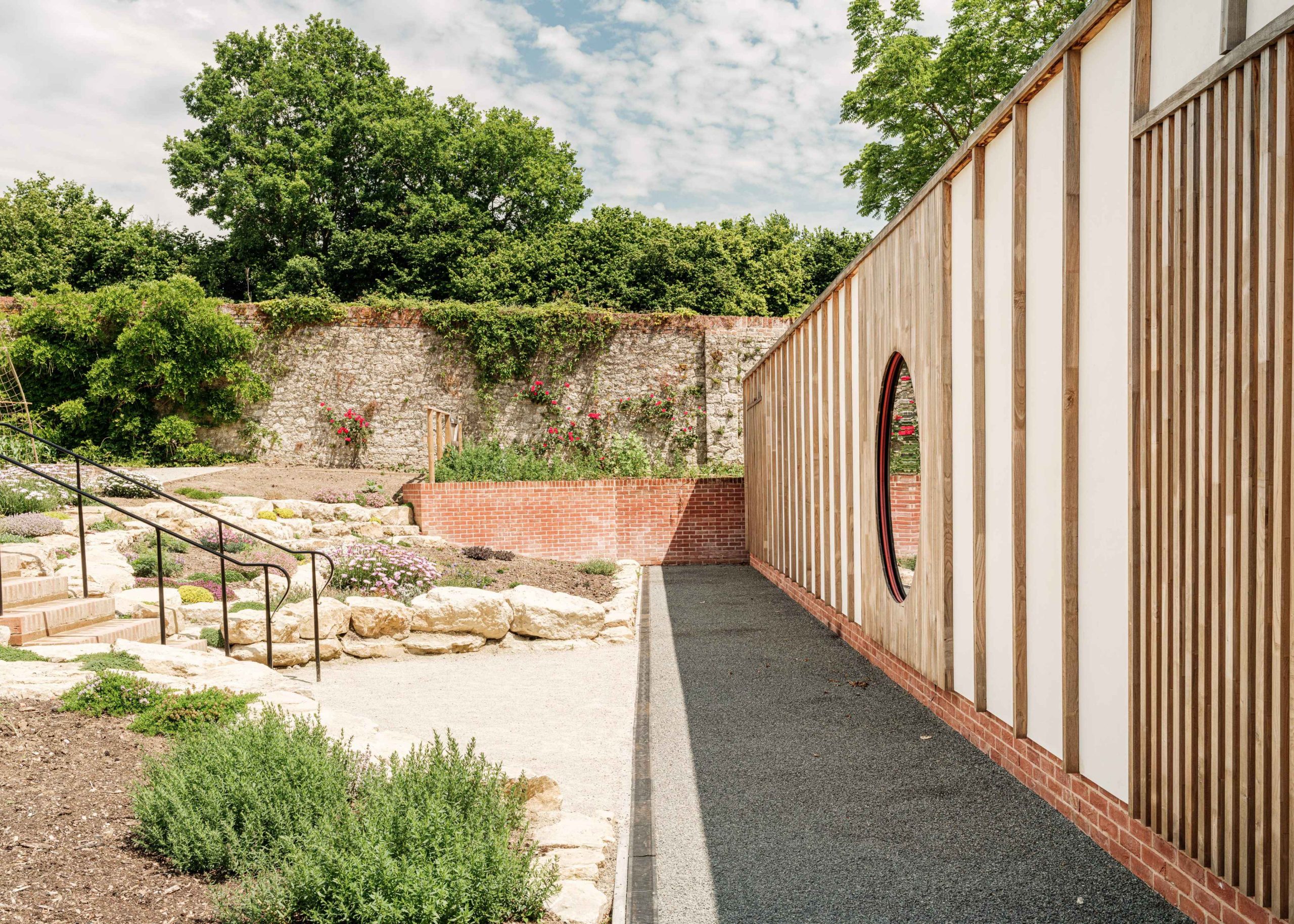 The project at Ightham Mote involved delivering a new low‑carbon Visitor Centre, relocating and upgrading the car park, and restoring the historic Walled Garden at the Grade I listed moated manor house in Kent, with the overarching aim to enhance customer experience, improve sustainability, and restore heritage features. The scheme responded to an outdated visitor centre and car park that previously intruded into the Walled Garden, reframing the visitor arrival and protecting the site’s heritage setting.